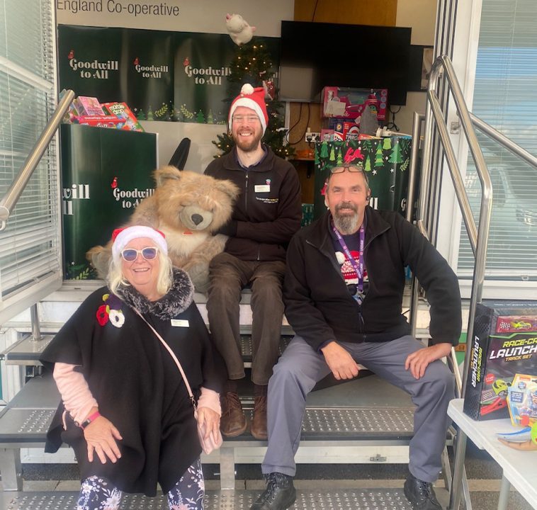 Starting at the retail society’s store in Northfield, Birmingham, the lorry, expertly driven and manoeuvred by Lol, took in a stop at Ibstock, Leicestershire, where colleagues had dressed up as fairies, elves, dragons and a tiger. Film and TV actor Stephen Graham was there to hand over a substantial donation of quality toys which will bring delight to some youngsters this Christmas.