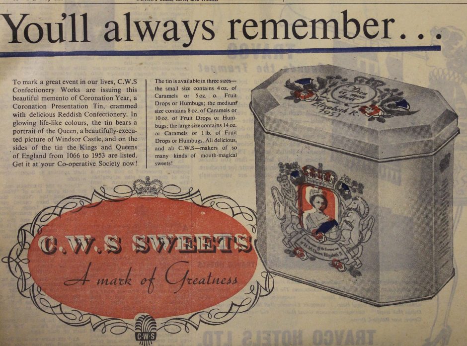 The Co-operative Heritage Trust has shared a number of items from its collection to pay tribute, including a commemorative tin produced by the CWS Confectionary works to mark her coronation in 1953, and a special edition of The Co-operative Home Magazine, produced by the CWS.