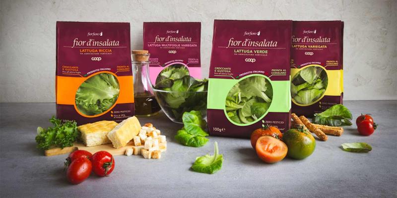 Meanwhile, Coop Italy has signed a deal with Kilometre Verde, an Italian vertical farming company, which will distribute four salad varieties – multi-leaf lettuce, green lettuce, curly lettuce and variegated lettuce – under the Fior Fiore brand to 700 stores, all packed in compostable paper bags.