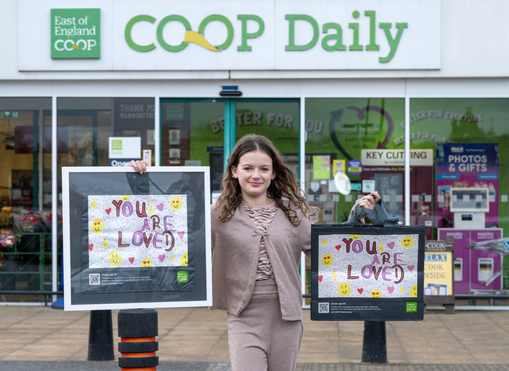 Last summer, the retail society invited children aged 4-11 to submit carrier bag designs along the themes of ‘kindness’ and ‘caring for others’. Following deliberation by teams at its stores across across Suffolk, Essex and Norfolk, six winning entries were selected, and have now made their way into stores.